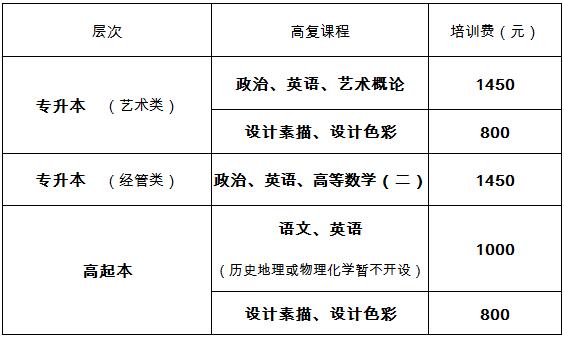 注:高復培訓費不含教材費