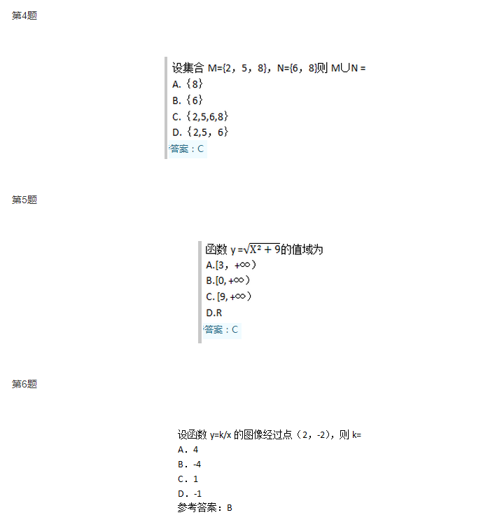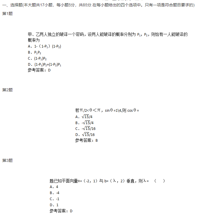 【摘要】2016年上海成人高考高升專(理科)數學考試試題及答案...