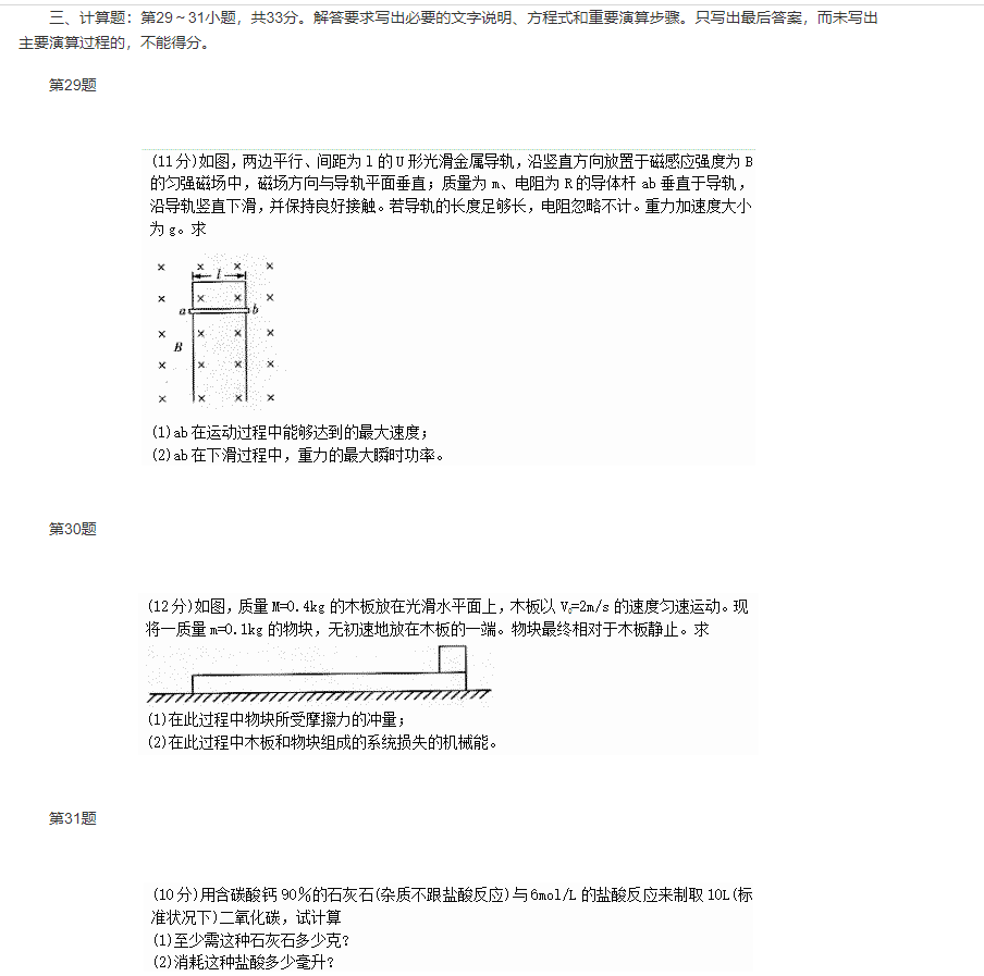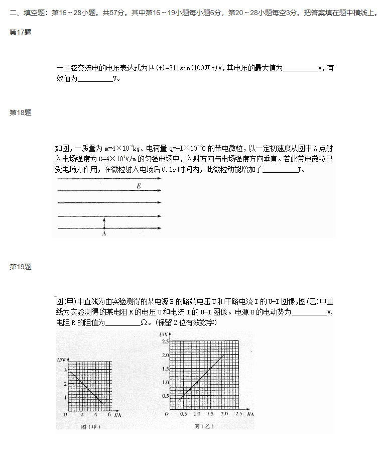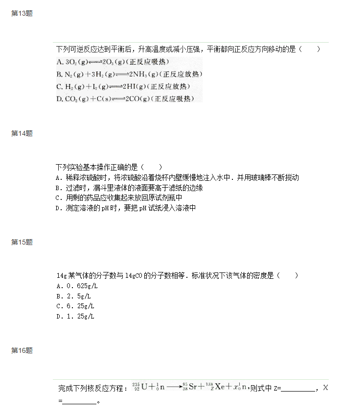 【摘要】2016年上海成人高考高升專理化綜合考試試卷...