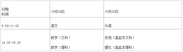 高中起點升本、??瓶荚嚂r間表
