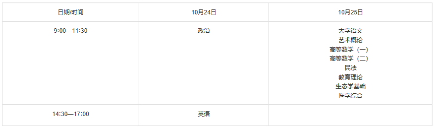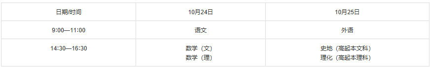 一、成人高等學校招生全國統一考試時間:10月24日、25日