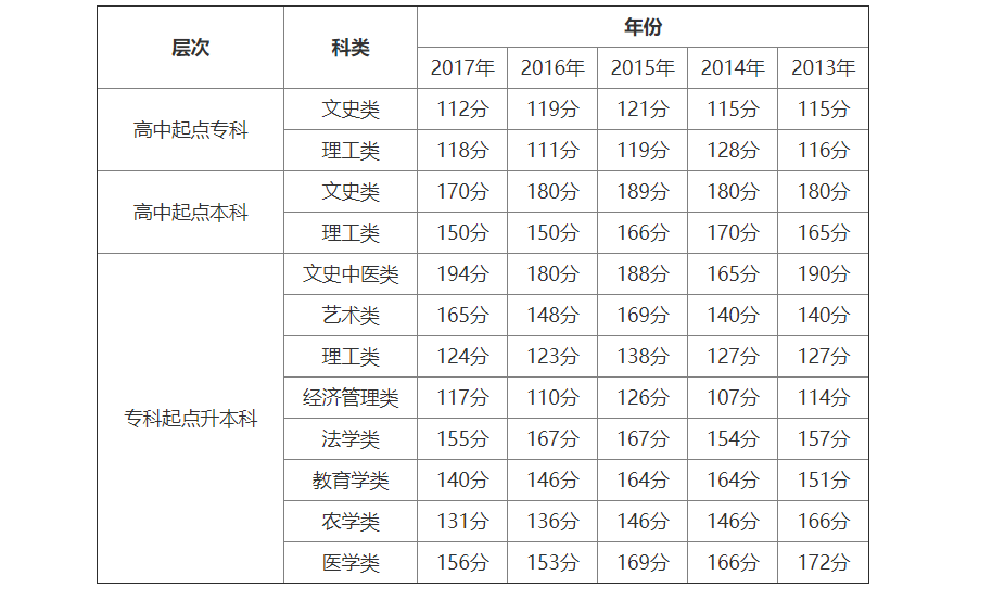【摘要】2013年-2017年上海成人高考歷年錄取分數線...