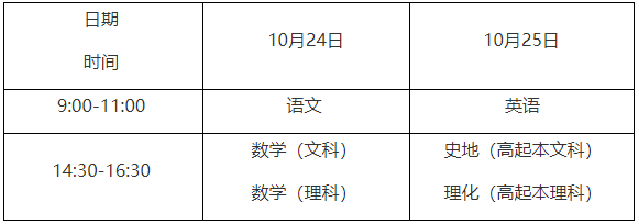 一、 高中起點(diǎn)升本科考試時(shí)間表