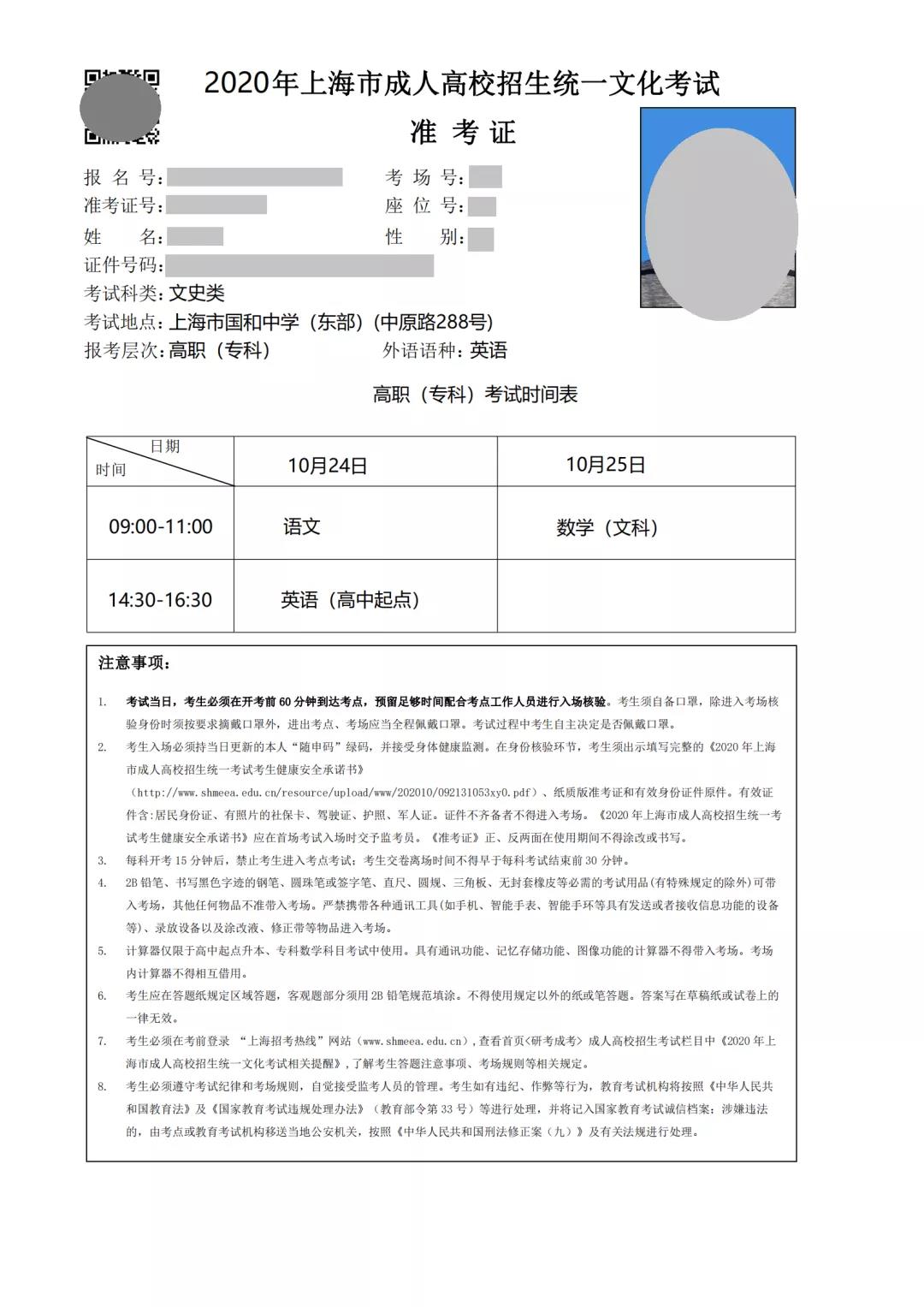 【摘要】2020年上海成人高考準考證打印時間: 2020年10月19日-10月25日(每天9:00-20:00) ,也就是從今天開始考生就可以進行準考證打印了,下面是2020年 上海成人高考 準考證打印流程須知如下:...