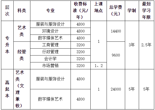 四、招生專業(yè)、收費標準、上課地點、學制、學習年限
