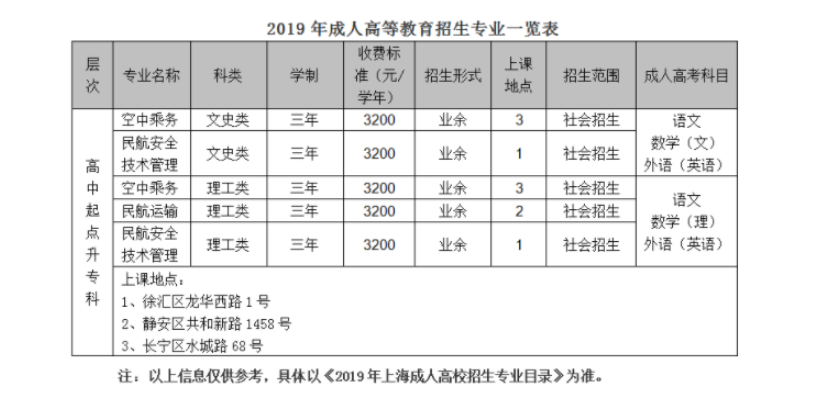 2019年上海民航職業技術學院成人高考招生簡章